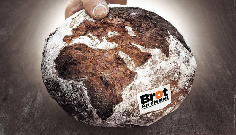 Informations-Folder dokumentieren die Arbeit von „Brot für die Welt“. Bei Getränken, Essen und Gesprächen wird die Gemeinschaft spürbar.